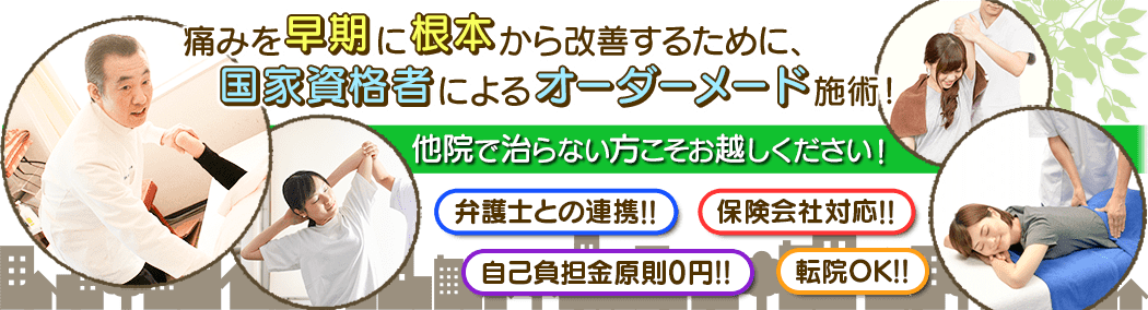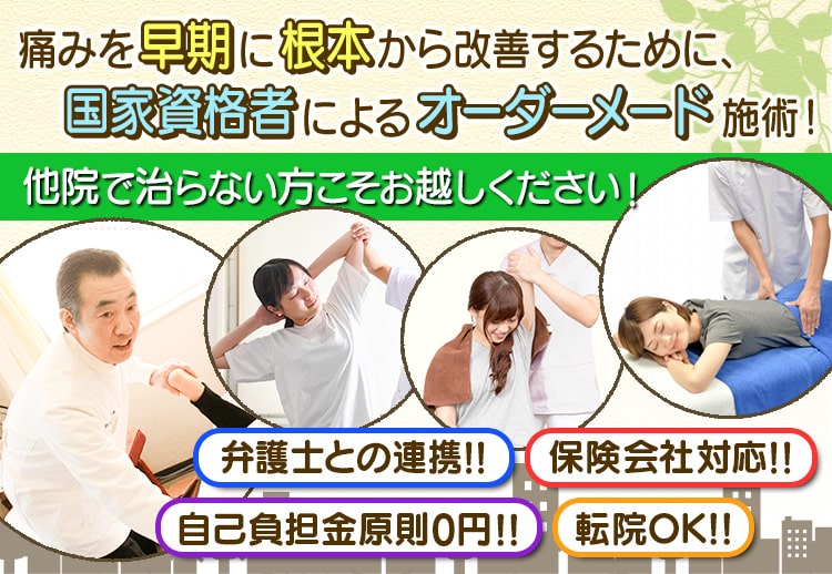当院では、そのような場合であったとしても、しっかりと施術を受けていただけるよう、むちうちに詳しい弁護士のアドバイスを受け、適切に対応させていただきます。
